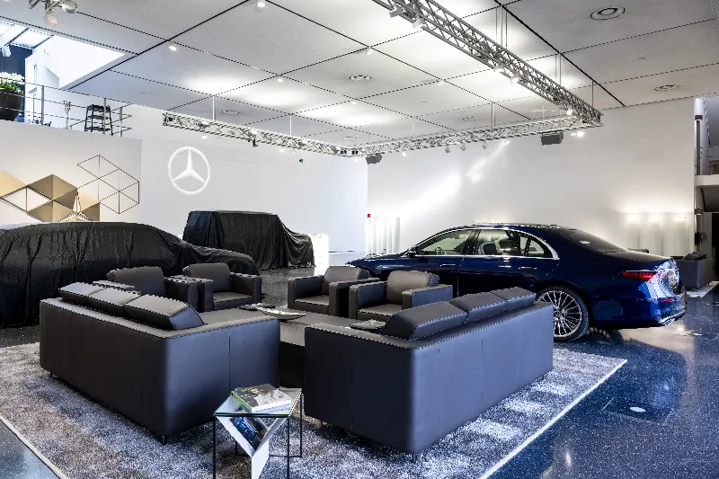 Customers can experience the exclusive models from Mercedes-Maybach, Mercedes-AMG, and Mercedes-Benz in a space covering more than 2,200 square meters. The combination of impressive exterior and interior design and personal consultation provides the ideal setting for a visit. An outstanding backdrop for beautiful design and exclusive products.