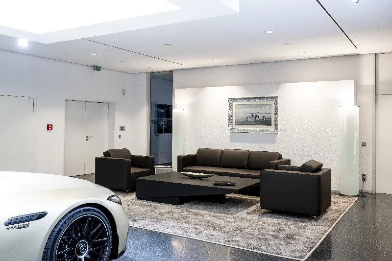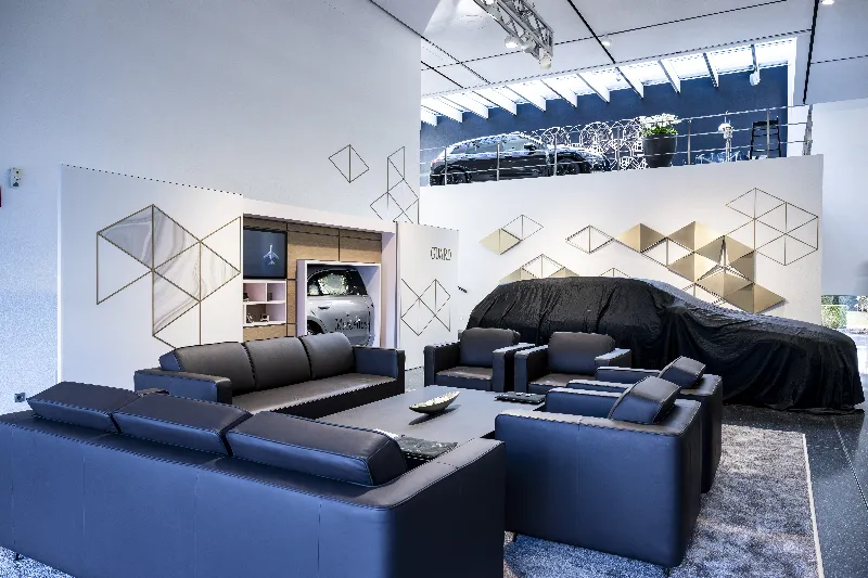 Events are also held at the Mercedes-Benz Center of Excellence in Sindelfingen. Surrounded by the most exclusive vehicle models, every event here becomes an unforgettable experience. The in-house gourmet cuisine rounds off the exquisite experience in style. Our upholstered furniture is displayed here in a unique setting.