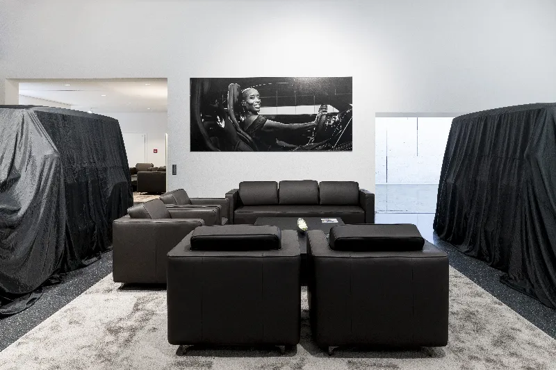 At Mercedes' Center of Excellence, the place dedicated to customised Maybach and G-Class models, our project partner Meinlschmidt Raumkonzepte was commissioned to design the new interior architecture. For the design, Sophisticated Living developed custom-made seating furniture for four lounge areas, which was designed specifically for this project. The armchairs and sofas are upholstered with a special, high-quality leather that was refined by leather expert Reinhardt in Pfullingen. The color of the particularly soft semi-aniline leather was perfectly matched to the interior surfaces of Maybach.