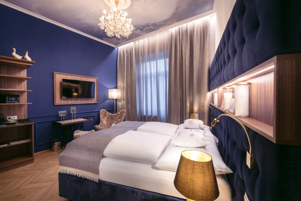 Unique worldwide, the Hotel Donauwalzer has dedicated all of its rooms to Viennese originals. 76 rooms couldn't be more different. Each one is unique. 22 traditional Viennese businesses – 23 different rooms – just like the families behind them! The elegance of Knize or the playfulness of Aida.